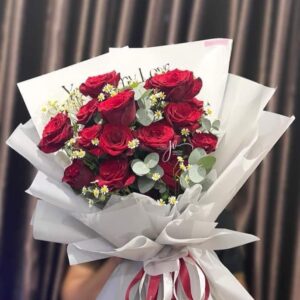 Bó hoa 500k tone trắng hoa đỏ