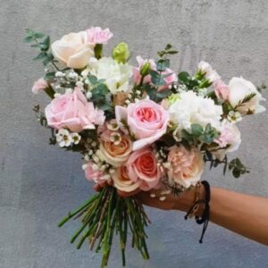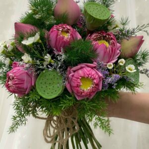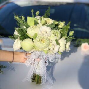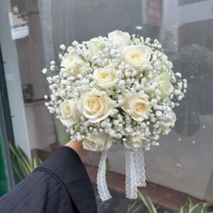 Combo hoa cưới là 1 bó cầm tay và 2 bông cài áo cô dâu và chú rể